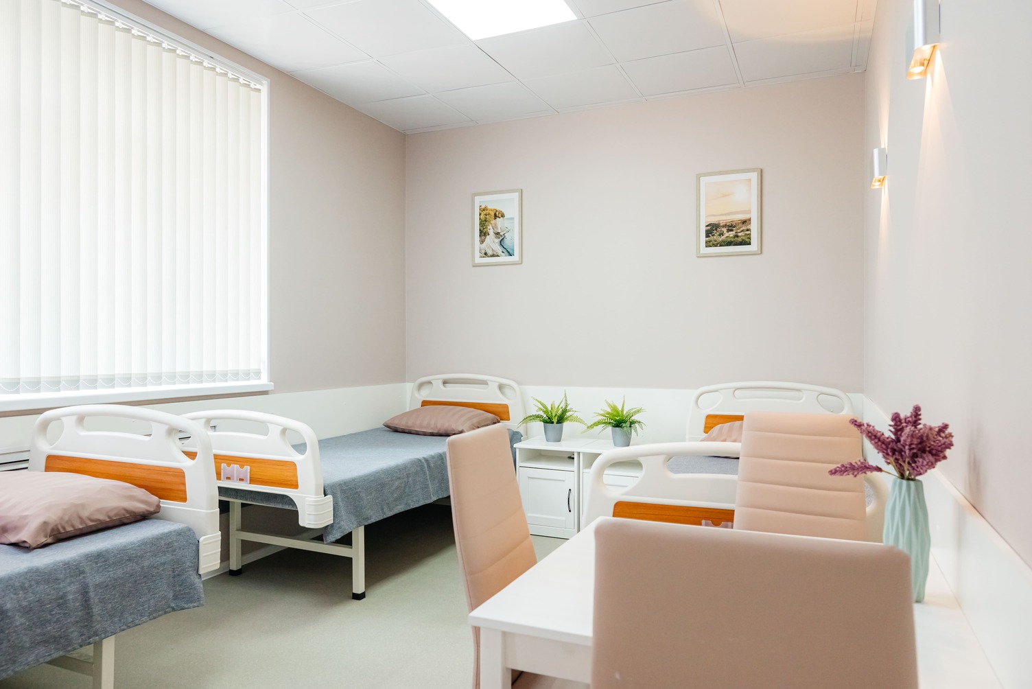 При госпитализации в наркологический стационар пациент может разместиться в отдельной палате или с одним-двумя соседями. Обеспечивается интенсивная терапия, круглосуточное наблюдение и уход, полноценное питание.